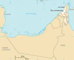 Localisation de l'émirat de Ras el Khaïmah en rouge. | |