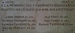 Une plaque commémorative rappelle l'exécution des résistants à la gare de Dijon[2].