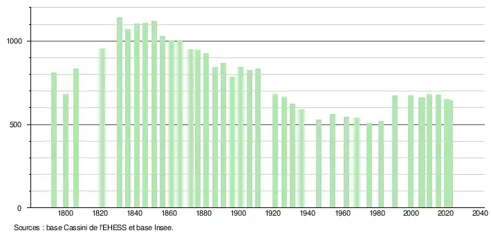 De 1962 à 1999 : population sans doubles comptes ; pour les dates suivantes : population municipale.