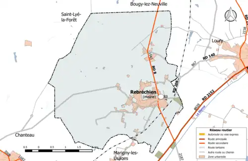 - ↑ « Orthodromie entre Rebréchien et Loury », sur fr.distance.to (consulté le ).