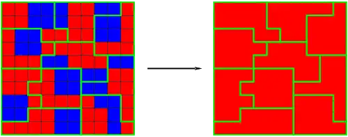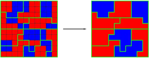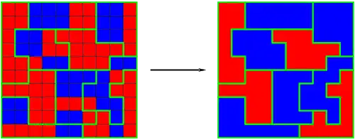 Mais il se peut que les circonscriptions soient découpées de sorte que les Rouges, majoritaires au sein de l'électorat, gagnent toutes les circonscriptions. Le parti Rouge sera donc sur-représenté (voir dessin ci-dessous).