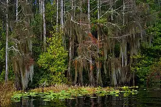 L'habitat des marais abrite également des espèces menacées et en voie de disparition, telles que les pics à tête rouge, les tantales d'Amérique, les serpents indigo, les tortues gophères et une grande variété d'autres espèces sauvages[1],[6].