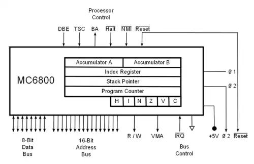 - registre d'état (PSW pour Processor Status Word) : décrit l'état du processeur ; il est le plus souvent interprété bit à bit, chaque bit représentant un drapeau ;