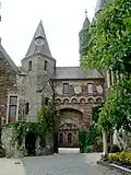 Dans la cour se trouve un puits, profond de 50 mètres. On peut également observer le beffroi, orné de quatre tourelles, et la tour des sorcières, seul vestige intact de l'ancien château.