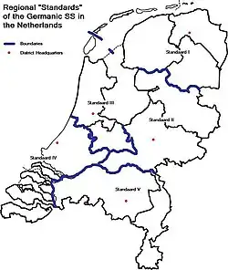 Cela dit, la bureaucratie aux Pays-Bas n'était pas un modèle d'efficacité, et les agents SS/SD n'y furent ni plus brutaux, ni plus rusés qu'ailleurs en Europe, mais la police allemande y était plus présente (environ 5 000 agents, alors qu'en France il n'y en eut jamais plus de 3 000). La principale caractéristique de l'occupation des Pays-Bas, par rapport au reste de l'Europe occupée, est essentiellement la prééminence des SS[19].