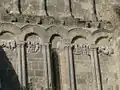 Le chevet a été fortifié par construction d'une galerie crénelée sous le toit et percement de nombreuses meurtrières.