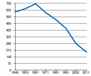 | 609 | 643 | 694 | 603 | 529 | 438 | 278[2] | 189[1] |