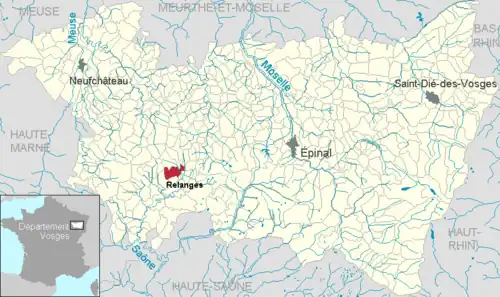 - ↑ « Orthodromie entre Relanges et Lignéville », sur fr.distance.to (consulté le ).