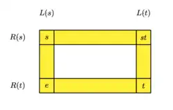 Pour un demi-groupe , on définit comme étant égal à si est un monoïde, sinon égal à , où est un élément neutre ajouté, donc vérifiant pour tout de . Il est commode d'utiliser la notation pour dénoter le produit des éléments de par les éléments de , soit .