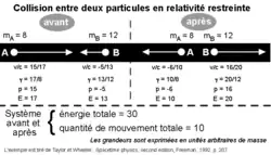 Einstein a également réécrit les formules qui définissent la quantité de mouvement et l'énergie cinétique de manière à rendre leur expression invariante dans une transformation de Lorentz.