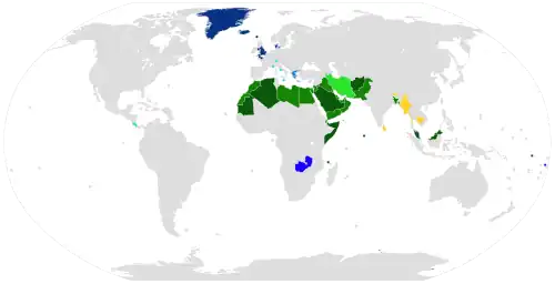 L'islam est de nos jours la religion la plus concernée par le statut de religion d'État. La plupart des pays occidentaux ne reconnaissent plus de religion d'État.