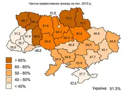 En 2016, la population de l'Ukraine (45 000 000 environ en 2020, hors diasporas et hors sécessions), se déclare croyante (à 70 %), selon une enquête du Centre Razoumkov[1],[2].