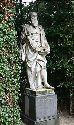 Sa statue en pied, sculptée par Alphonse de Tombay, orne la place du Petit Sablon à Bruxelles[2].