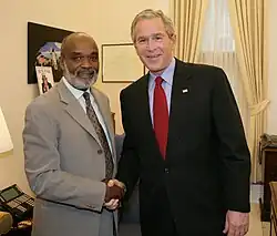 George W. Bush et René Préval en 2006, à la Maison-Blanche.