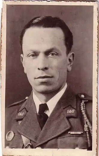 Officier de liaison de la Division d'Infanterie puis commandant de compagnie au 146 ERIF (1939), en , il est inscrit sur la liste d'aptitude pour le grade de Capitaine.