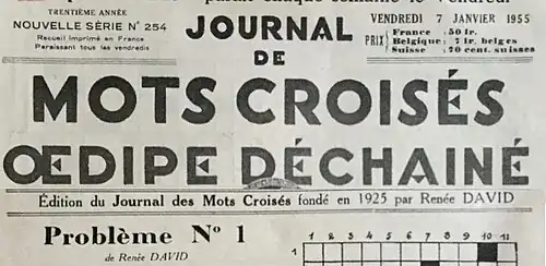 Lorsque L'Œdipe déchainé parait en 1945, faisant suite au Journal des mots croisés, la première grille proposée aux lecteurs sera toujours celle de Renée David, ce qui perdura jusqu'en 1981.
