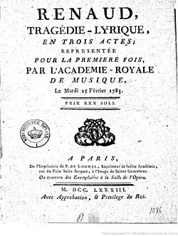 - Livret original : Jean-Joseph Lebœuf, Renaud, Paris, P. de Lormel, (lire en ligne)