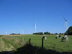 - Ligne de 16 éoliennes, construites en 2005, sur les communes de Repaix, Igney, Amenoncourt et Foulcrey[38], dont la plus haute atteint 120 m.