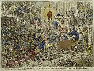 D'autre part, la Révolution française engendre en Angleterre un grand débat d'idées, auquel Jane Austen n'est pas étrangère, et n'est pas sans impact sur le féminisme, tel que Mary Wollstonecraft l'expose en 1792 dans son ouvrage A Vindication of the Rights of Woman (Défense des droits de la femme). En effet, Mary Wollstonecraft est proche des idées de William Godwin, Thomas Paine et Joseph Priestley, ainsi que de celles de la Révolution française. Aussi est-elle impliquée dans le débat qui agite le pays sur les idées révolutionnaires, avec comme conséquence un certain discrédit à l'encontre du féminisme et de ses aspects radicaux. Jane Austen elle-même suit ce débat et prend parti en faveur de la famille, élément de stabilité dans les tensions de cette époque tourmentée[14]. Cependant, même si ses romans ne sont guère revendicatifs, même si elle est conservatrice (tory) dans l'âme, comme le reste de sa famille[15], son œuvre conserve suffisamment la marque des convictions qu'elle se forge pour qu'on y ait vu certains aspects féministes[16] (par exemple, par la façon dont est dépeinte l'attitude du général Tilney envers Catherine Morland, dans Northanger Abbey[17]).