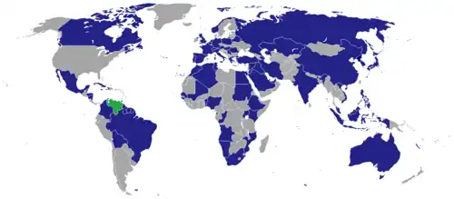 Voici les représentations diplomatiques du Venezuela à l'étranger: