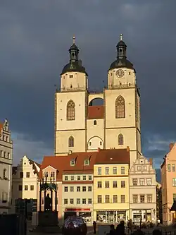 Le retable est commandé à Cranach l'Ancien par la ville de Wittenberg[2]. Le précédent retable a été détruit en 1522 lors du mouvement iconoclaste mené par Andreas Bodenstein et combattu par Luther[3]. Cranach peint celui-ci avec l'aide de son atelier, et notamment de son fils Lucas Cranach le Jeune[2], en utilisant des dessins préparatoires réalisés pour une commande du cardinal catholique Albert de Brandebourg[4].