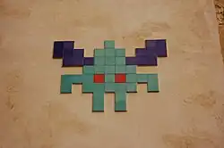 Mosaïque de l'artiste Invader à Paris, inspirée par Space Invaders.