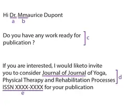 Les revues prédatrices de mauvaises qualité envoient de grands nombres de courriels d'hameçonnage avec des erreurs fréquentes : a) appellent « Dr » tous les chercheurs ; b) fautes d'orthographes parfois nombreuses, y compris dans le nom du chercheur ; c) pression temporelle (l'article doit être transmis rapidement) ; d) possible mauvaise maîtrise de l'anglais, champ de recherche de la revue n'ayant souvent aucun lien avec celui du chercheur visé ; e) mauvais usage de l'ISSN ou faux identifiant.