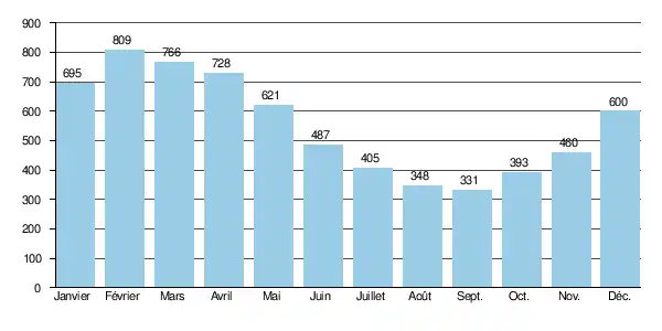 Les crues sont habituellement modérées, du moins dans le contexte du bassin ligérien. Les QIX 2 et QIX 5 valent en effet respectivement 4,3 et 6,2 m3/s. Le QIX 10 est de 7,5 m3/s et le QIX 20 de 8,7 m3/s. Quant au QIX 50, il se monte à 10 m3/s.