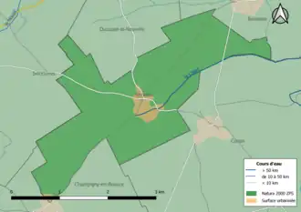 L'occupation des sols est marquée par l'importance des espaces agricoles et naturels (96 %). La répartition détaillée ressortant en 2012 de la base de données européenne d'occupation biophysique des sols Corine Land Cover est la suivante : terres arables (95,6 %), forêts (0,5 %), zones urbanisées (4 %)[13].