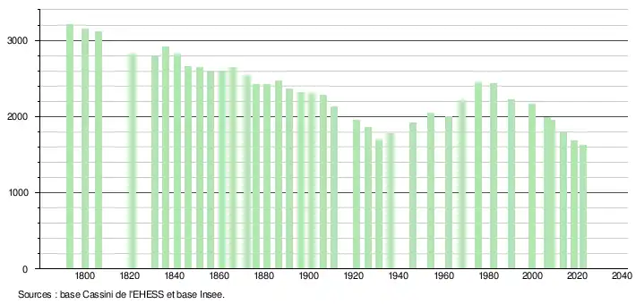 - ↑ Population municipale de référence en vigueur au 1er janvier 2025, millésimée 2022, définie dans les limites territoriales en vigueur au 1er janvier 2024, date de référence statistique : 1er janvier 2022.