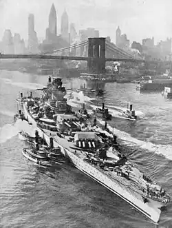 - ↑ Lenton, American battleships 1968, p. 37, 41, 45.
