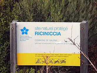 Le site protégé de Riciniccia[1] est situé Plaine de l'Orme (Piana di l'Olmu) – commune de Galeria en Haute-Corse, à l'embouchure du fleuve côtier Fango. Le site couvre environ 400 hectares. Il se trouve dans les limites du Parc naturel régional de Corse.