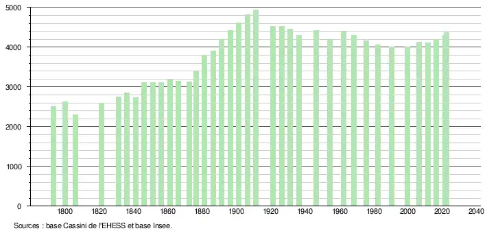 - ↑ Fiches Insee - Populations de référence de la commune pour les années 2006, 2007, 2008, 2009, 2010, 2011, 2012, 2013, 2014, 2015, 2016, 2017, 2018, 2019, 2020, 2021 et 2022.