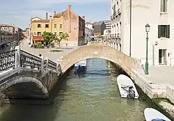 Ce rio est traversé par le : Ponte Cossetti. Martin Cuccetti acheta ici une maison vers 1873 reliant le fondamenta Cossetti au fondamenta del Pagan.