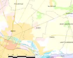 Rivery est un bourg de la banlieue d'Amiens, jouxtant au nord-est la ville-centre, situé sur l'axe Amiens - Corbie constitué par l'ex-route nationale 29. La zone urbanisée ne comporte pas de rupture entre les deux communes, et se prolonge jusqu'à la Rocade d'Amiens.