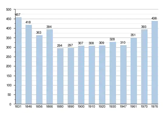 - Sources:INS, Rem:1831 jusqu'en 1970=recensements, 1976= nombre d'habitants au 31 décembre