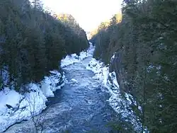 La surface de la partie supérieure de la rivière est généralement gelée du début décembre à la mi-avril. La foresterie constitue la principale activité économique de ce secteur.