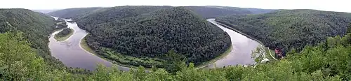 La rivière Ristigouche constitue une partie de la frontière entre le Québec et le Nouveau-Brunswick à partir de la confluence avec la rivière Patapédia[2].