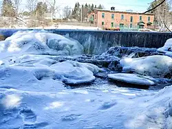 - 4,1 km vers le sud-ouest, en recueillant le ruisseau Péloquin, en passant autour de l'île Rouillard, en traversant le barrage La Poudrière, en traversant les rapides de la Poudrière et le barrage Watopeka, en traversant la partie sud de la ville de Windsor.