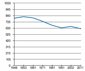 En 2011, l'âge moyen de la population était de 44,9 ans, 42,4 ans pour les hommes et 47,5 ans pour les femmes[6].