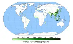 Près de 2 000 variétés de riz sont aujourd'hui cultivées. Les difficultés liées à la culture du riz font que, contrairement au blé, il est cultivé dans très peu de pays. Ainsi, près de 90 % de la production mondiale est fournie par l'Asie des moussons. À elles seules, les productions totales additionnées de la Chine et de l'Inde dépassent la moitié de la production mondiale. Cela s'explique notamment par les exigences du riz en matière climatique.