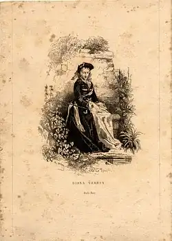 - Diana Vernon, dix-huit ans, de père anglais et de mère écossaise, nièce de sir Hildebrand Osbaldistone. Catholique. Enjouée, fine, simple. Élevée comme un garçon parmi ses rustres de cousins, elle a développé une étonnante personnalité faite d’indépendance d’allure, de vivacité d’esprit et de solide franchise. Elle est néanmoins entourée de mystère, car c’est une conspiratrice jacobite. Par ailleurs, un arrangement de famille l’oblige ou à entrer au couvent ou à épouser un Osbaldistone — Thorncliff ayant été désigné par sir Hildebrand.