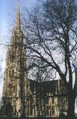 Le début de la construction de la première église a été retardé parce que les autorités de la ville estimaient que la hauteur de la colline sur laquelle l'église se dresserait était un trop grand obstacle à la circulation dans la ville. Le clocher de l'église avec sa hauteur de 54 mètres domine encore aujourd'hui le quartier de Lower Moray Place.