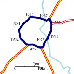 La ceinture de boulevards de Bordeaux, communément appelée « les boulevards », située sur la rive gauche du fleuve, suit les limites de la ville sur une partie de son tracé. Longue de 12 km, elle est construite par étapes de 1853 à 1902. Les principaux carrefours portent le nom de « barrières », celles-ci servant à percevoir l'octroi, un impôt supprimé en 1928[15]. Au milieu du XXe siècle, les boulevards sont aménagés en 2 × 2 voies sur une grande partie de leur tracé, et sont pour cette raison qualifiés d'« autoroute urbaine » par Pierre Hurmic, le maire de Bordeaux[16]. Au XXIe siècle, une voie de circulation est transformée en couloir de bus accessible aux cyclistes. Il est prévu de les réaménager d'ici 2040. Le projet ne se limite pas aux boulevards historiques, il inclut également la rue Lucien Faure, le pont Jacques-Chaban-Delmas et le pont Simone-Veil, ainsi que d'autres axes majeurs de la rive droite pour une longueur totale de 19 km[17],[18],[19],[20]. Une ligne de bus express circulaire doit également être mise en service d'ici 2027[21].