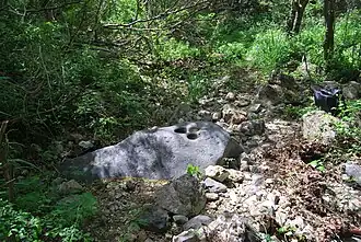 En amont, à quelques mètres de cette roche gravée se trouve un puits daté du , encore utilisé aujourd'hui.