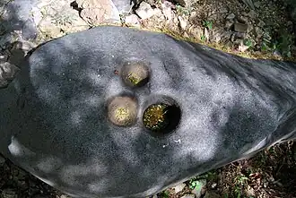 Il s'agit d'un rocher de diorite de forme allongée, qui mesure 2 m et demi sur 1 m et 50 cm de hauteur. Elle est ornée de tous les côtés de petites dépressions circulaires appelées cupules, de différentes tailles et profondeurs, formant des motifs abstraits et des visages simples composés de deux yeux et d'une bouche, parfois entourés d'un trait de contour. Ces cupules ont été probablement exécutées à l'aide d'un outil en pierre. Au sommet du rocher il y a 3 grandes cupules profondes de section circulaire. On ignore la fonction de ces creux réguliers, peut-être s'agissait-il de polissoirs[3] utilisés pour la fabrication de haches en pierre.
