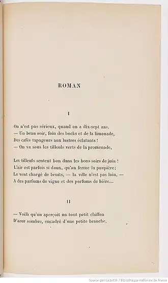 Première page de Roman de Rimbaud, édition Léon Vanier (1895).