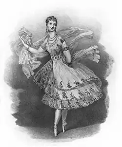 La danseuse est maintenant montée sur des pointes qui allongent les lignes et transforment la démarche. Elle est vêtue d'un tutu blanc, d'un corsage étroit et porte une couronne de roses blanches dans les cheveux. La ballerine est légère, aérienne, surnaturelle et possède une grâce immatérielle. Le ballet blanc est né et des danseuses aussi célèbres que Carlotta Grisi, Marie Taglioni et Fanny Elssler envoûtent les spectateurs dans des œuvres immortelles telles que La Sylphide (1832) et Giselle (1841). Le ballet romantique trouvera un théoricien en la personne de Carlo Blasis qui écrira en 1830 son Manuel complet de la danse.