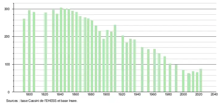 La commune a atteint dès le recensement de 1999 son niveau démographique le plus bas jamais enregistré de toute sa période contemporaine.