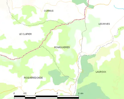 - ↑ « Liste des zones Natura 2000 de la commune de Romiguières », sur le site de l'Inventaire national du patrimoine naturel (consulté le ).